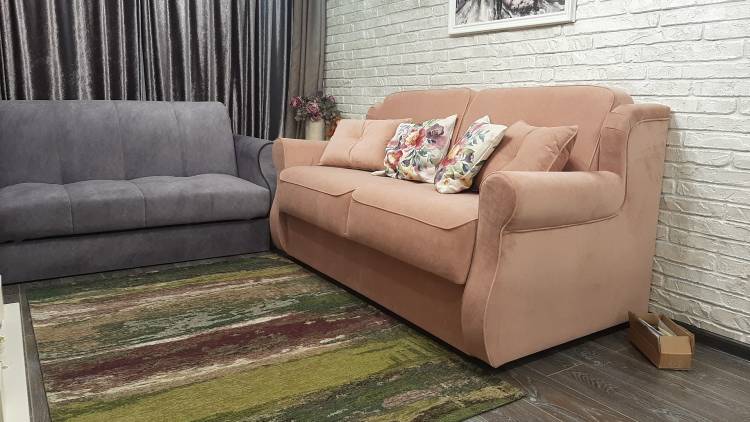 В диванах используется механизм «итальянская раскладушка», Отелло. Раскладывая такую конструкцию, вы тянете на себя не сидение, а спинку. При этом откреплять подушки от спинки не надо — они окажутся с нижней стороны спального места и никак не помешают разложить диван.