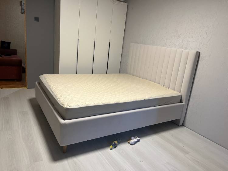- Обратная сторона изголовья обита спанбондом. При оформлении покупки вы можете заказать обивку задней части спинки тем же материалом, в котором выполнена обивка кровати.