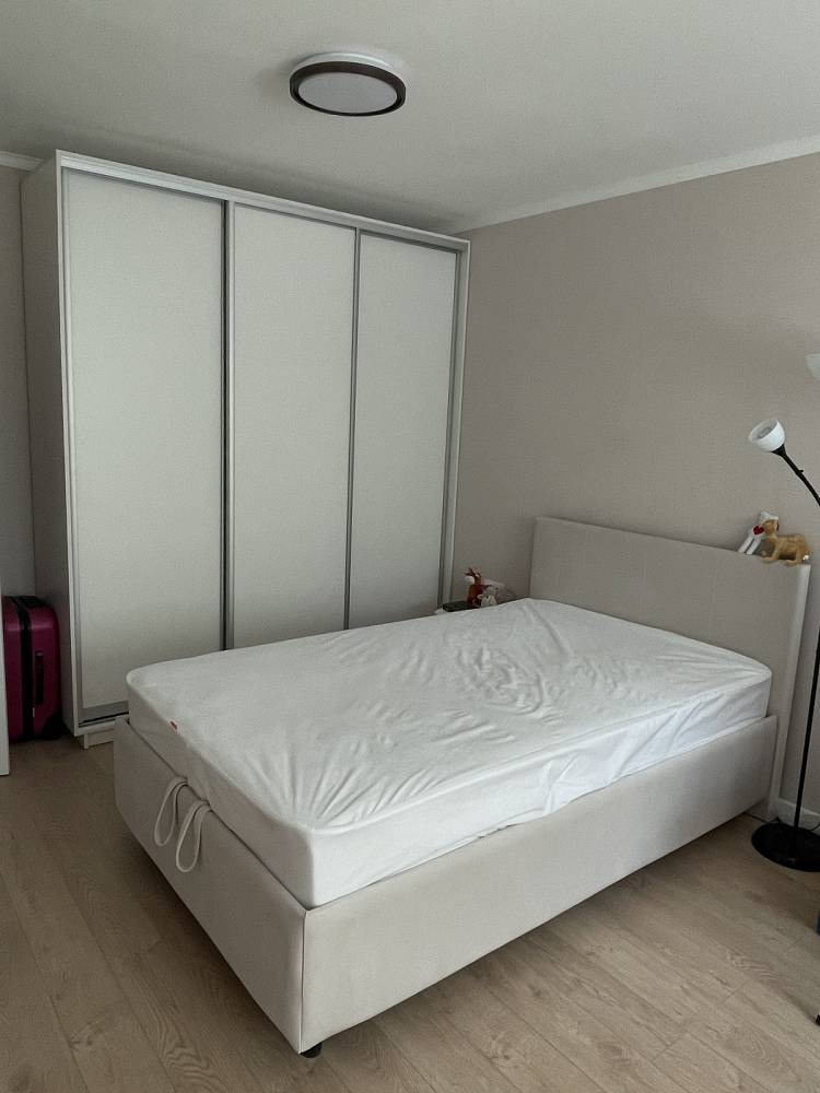 Элегантная кровать, удобная. О ножки не бьешься, короб с обивкой из ткани - тоже удариться не обо что. Удобное и красивое изголовье. У нас основание с подъемным механизмом. Очень большой вместительный бельевой ящик под кроватью.