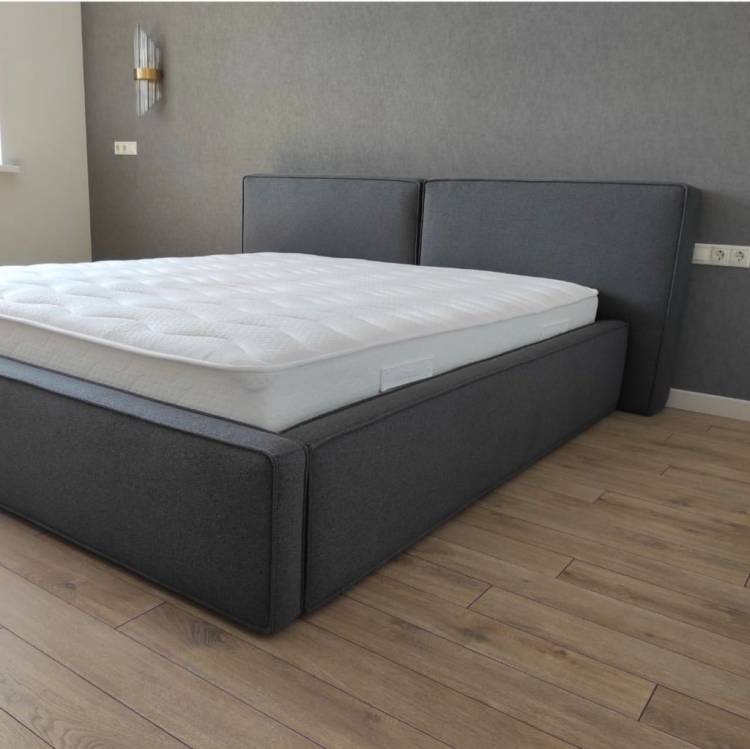 Кровать мягкая по всему периметру, без ножек - можно не бояться удариться мизинчиком) Изголовье в виде двух отдельных подушек с плоским широким верхом, на который можно положить телефон или планшет и не бояться, что ночью упадет на лицо. Дизайн с закосом под лофт, именно как я искал, в интерьер спальни вписался отлично. Сплю чуть больше полу года, за это время минусов не обнаружил.