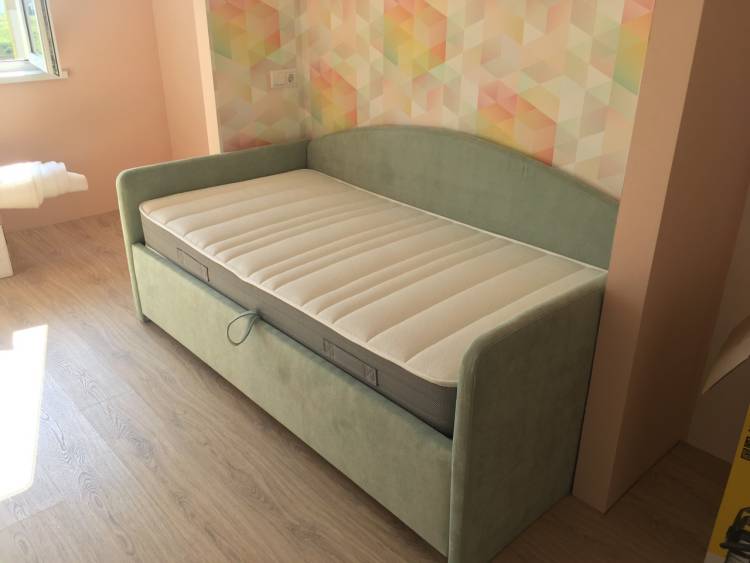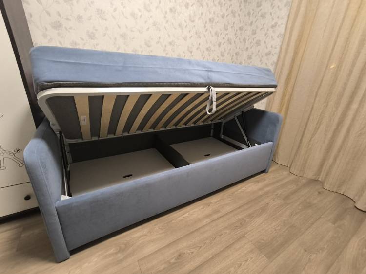 Огромное спасибо производителю за эту кровать. Красивая, удобная, вместительная и современная. Заказали кровать размером 90х190 с подъёмным механизмом и ящиками для хранения. Так же заказали матрас с чехлом под цвет кровати и декоративные подушки. Дочь в восторге
