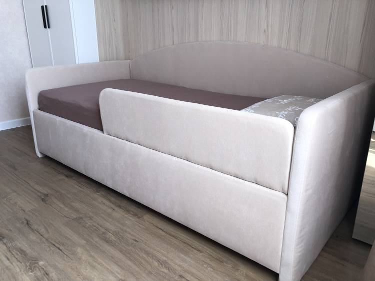 • Кровать-софа с обивкой из экокожи или мебельной ткани