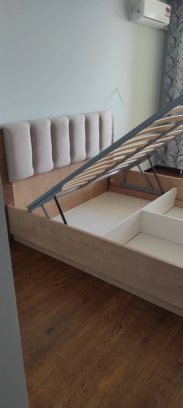 Кровать хорошая, качественная и стильная. Сколов нигде нет, не скрипит. Хорошо вписалась в спальную комнату.