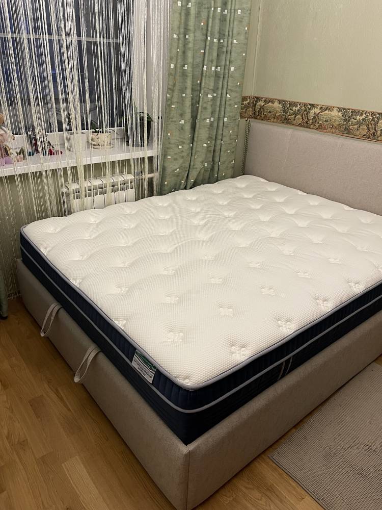 Это идеальный матрас. Он вроде и мягкий, но ты никуда не проваливаешься, матрас хорошо держит тело. Сон стал крепким. Он однозначно стоит своих денег. Единственное что учитывайте что он довольно тяжелый, и поднять его хрупкой девушке проблематично. А так я полностью довольна и матрасом и кроватью.